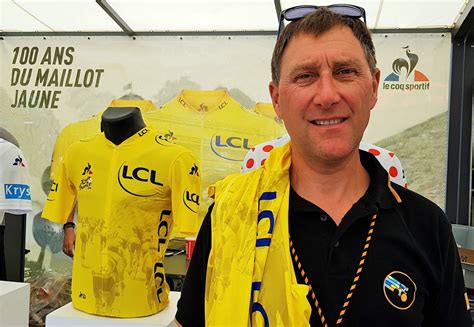 Bernard Thévenet en jaune sur un podium en bois