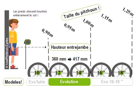 La hauteur de la selle devra permettre à l’enfant d’avoir les deux pieds bien posés au sol. Il est important de tester la draisienne en magasin de l’enfant pour choisir une hauteur de selle appropriée.