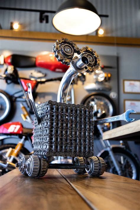 Les chaînes de vélo sont parfaites pour fabriquer des supports originaux pour bougies. Ce design est à la fois décoratif et fonctionnel, car il empêche la cire fondue de couler et d’abîmer les surfaces. Créez des supports de différentes tailles et styles selon le type de bougies que vous souhaitez utiliser. Ce projet est idéal pour ajouter de la chaleur et une touche industrielle ou vintage à n’importe quel espace de votre maison.