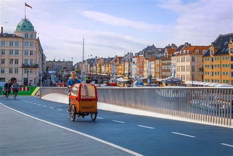 Une piste cyclable à Copenhague, séparée de la chaussée et du trottoir.
