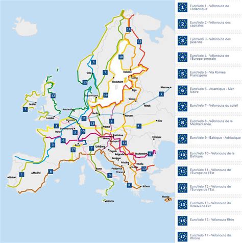 Voici un tableau récapitulatif des EuroVelo routes traversant la France :