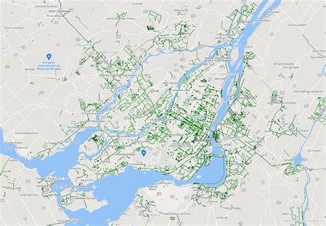 On voit ici sur la gauche la carte de Montréal, où les pistes cyclables sont bien identifiées.