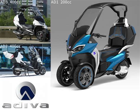 Adiva marque son retour en France à l'occasion du Salon de la Moto, Scooter et Quad de Paris avec un scooter à trois-roues reprenant le concept de toit escamotable. Conçu en Italie, émigré au Japon depuis de longues années, produit à Taïwan, motorisé par Kymco, voici venir l'Adiva AD3 300, un scooter à trois roues et à toit rétractable très séduisant en apparence. Nouveau tricycle à moteur de la catégorie L5e, l'AD3 fait un peu figure d'objet roulant difficile à identifier, à mi-chemin entre les mondes de l'automobile et du scooter.